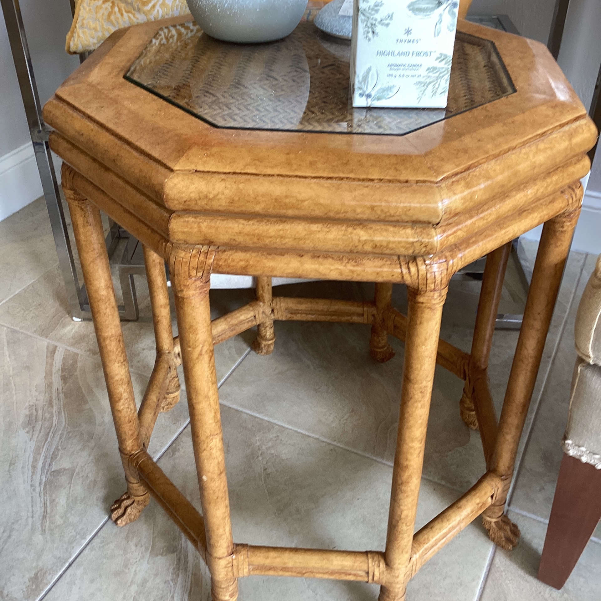 Octagon, glass, wood, side table